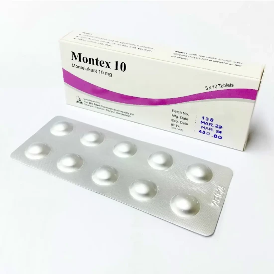 Montex 10 is a prescription medication used to prevent asthma and to manage allergic symptoms such as sneezing and a runny nose. It works by reducing inflammation in the airways, helping to make breathing easier.