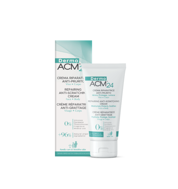 Body cream of the dermoACM company is designed for all skin types. It rejuvenates and hydrates the skin with a soft texture, leaving a feeling of softness. It is suitable for the flare-up phase of atopic dermatitis symptoms, since it relieves eczema and itching. It moisturises and deeply nourishes, reducing discomfort of dry and reactive skin. Thanks to Ceramide and Panthenol, it restores and reinforces the integrity of the skin barrier by ensuring excellent moisturization. The exclusive complex based on Avenanthramide, Calendula, and Vitamin E, is effective in calming itching sensations and irritation. Rich texture. It is non-greasy and non-sticky. Adults and children.