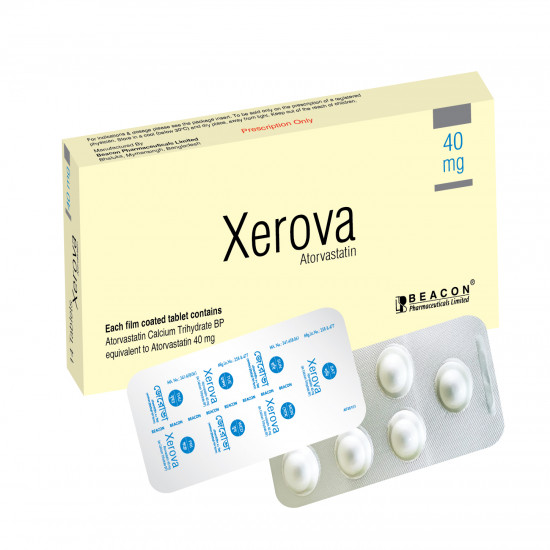 Xerova 40, which contains Atorvastatin 10mg, works by inhibiting an enzyme called HMG-CoA reductase, which plays a key role in the production of cholesterol in the liver. By reducing the production of cholesterol, particularly low-density lipoprotein (LDL) or "bad cholesterol," it helps lower overall cholesterol levels in the blood. This reduces the risk of heart disease, strokes, and other cardiovascular problems by reducing plaque buildup in the arteries. Atorvastatin also helps increase high-density lipoprotein (HDL), or "good cholesterol," which further supports heart health.