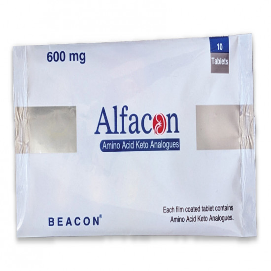 Alfacon® is a specialized nutritional supplement containing essential amino acids, partially provided as their corresponding keto-analogues, developed for patients with chronic kidney disease (CKD). It supports protein metabolism while minimizing nitrogen intake, helping to protect kidney function.