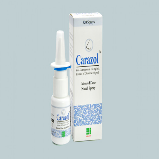 Carazol Nasal Spray contains iota-Carrageenan, a naturally derived polysaccharide obtained from edible red seaweed (Chondrus crispus, commonly known as Irish Moss).