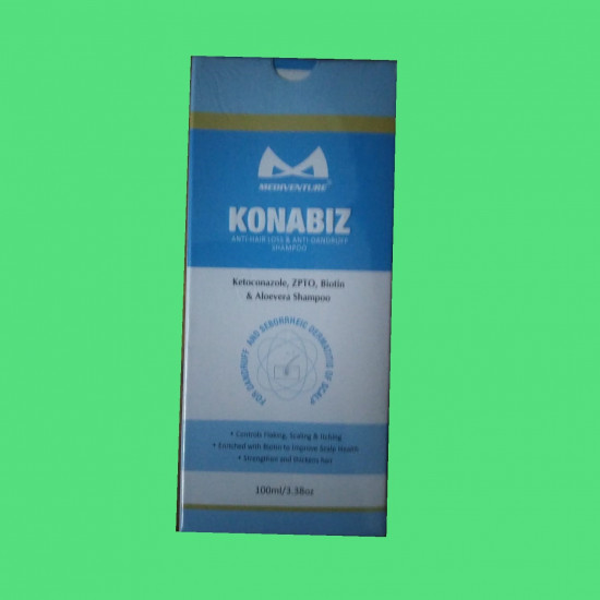 KONABIZ Anti-Hair Loss & Anti-Dandruff Shampoo (Ketoconazole + ZPTO + Biotin + Aloe Vera) is a specialized scalp-care formula designed to help manage dandruff and seborrheic dermatitis of the scalp. With an effective combination of Ketoconazole and Zinc Pyrithione (ZPTO), it helps control the root causes of dandruff while reducing flaking, scaling, and itching. Enriched with Biotinto support scalp health and Aloe Vera to soothe and comfort the scalp, KONABIZ helps keep the scalp clean, calm, and refreshed
