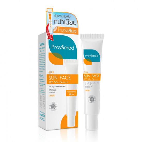 Provamed Sun SPF 50+ Face (Beige) is an advanced, non-chemical sunscreen in a 30g size. It's designed to safeguard against sunburn and dark spots caused by broad-spectrum UVA/UVB rays.