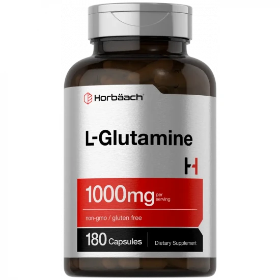 Horbaach L-Glutamine Capsules 1000mg | 180 Powder Pills for Women and Men | Pre Workout & Post Workout | Non-GMO & Gluten Free
